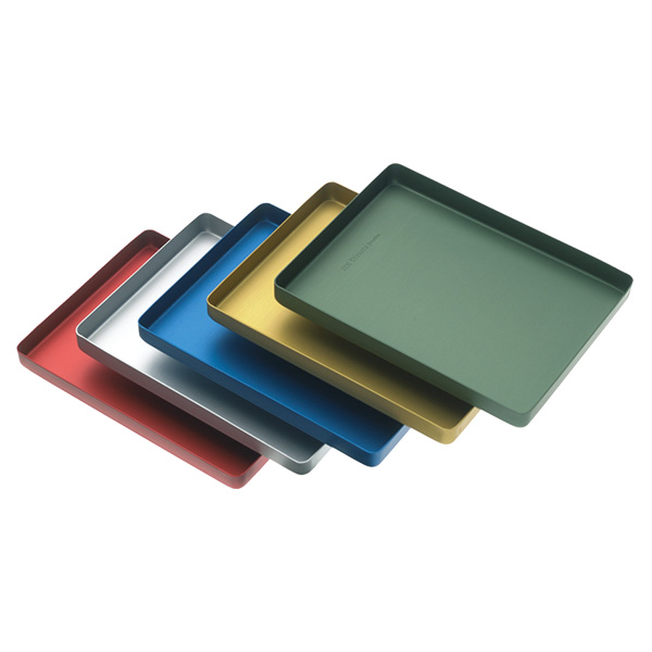Aluminiumsbakke uden låg, standard størrelse, uperforerede, 28 x 18 cm, blå. OBS MÅ IKKE ANVENDES I DENTALOPVASKEMASKINER, DA FARVEN PÅVIRKES AF VISSE OPVASKEMIDLER.