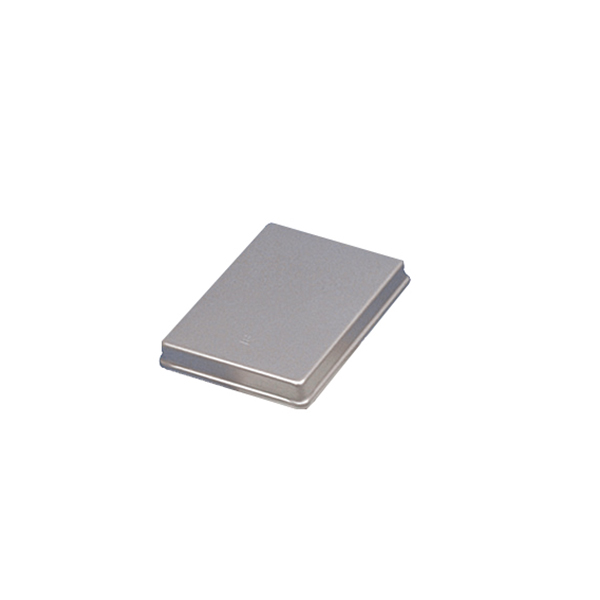 Låg til halve bakker, str. 18 x 14 x 2,5 cm, aluminium, uperforeret, gråt. OBS MÅ IKKE ANVENDES I DENTALOPVASKEMASKINER, DA FARVEN PÅVIRKES AF VISSE OPVASKEMIDLER.