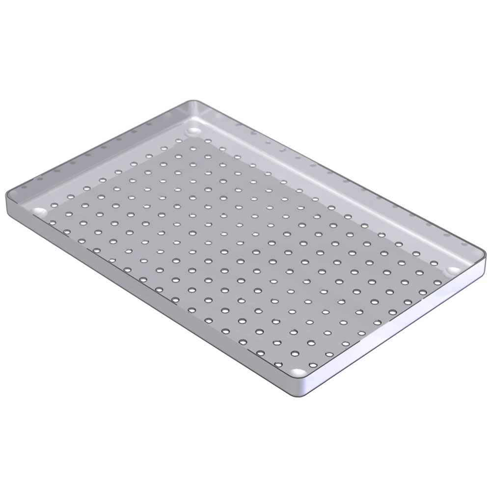Bakke/kassette i rustfrit stål, uden låg, perforeret, standard str. 28 x 18 x 1,9 cm.