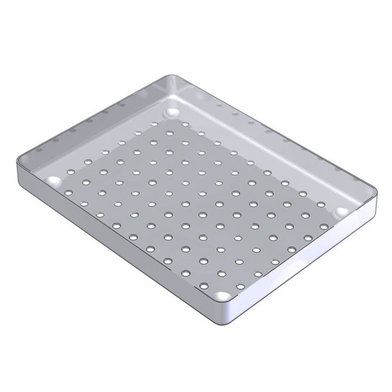 Bakke/bund i rustfrit stål i ½ størrelse, 18 x 14 cm, perforeret, uden låg.