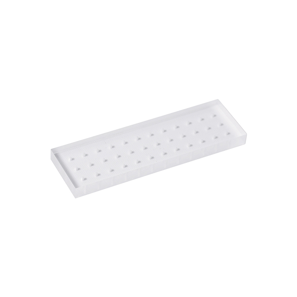 Borstander i plexiglas til 36 FG bor, 13 x 4 x 1 cm.