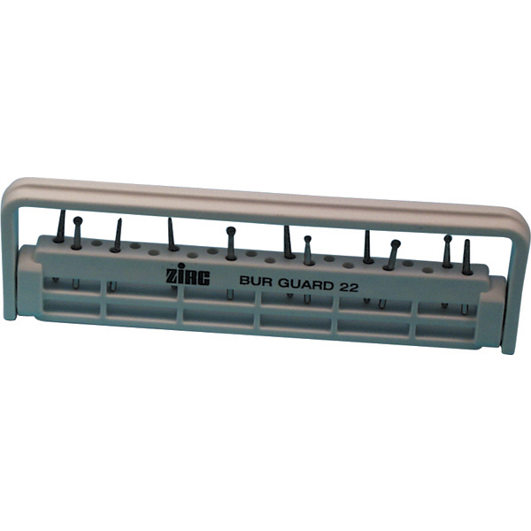 Borstander, "Steri-bur guard", holder med justerbar beskyttelsesbøjle, kan bruges i ultralydskar, opvaskemaskine og autoklave, til 22 FG/RA bor.