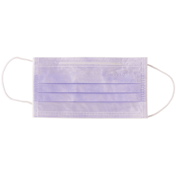 3-lags mundbind, klasse II, med næseklemme og øreelastik, latexfri, lilla. Indeholder IKKE phthalater eller formaldehyd.