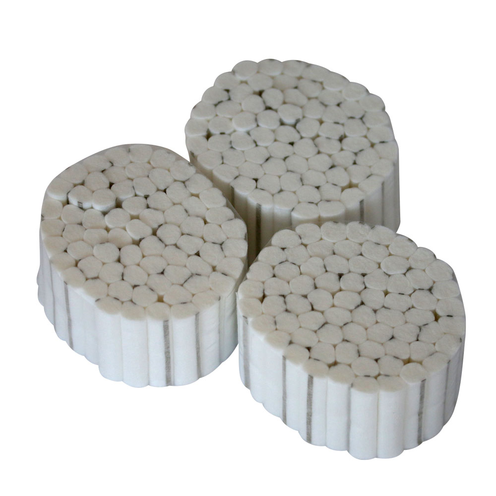 Vatruller i bomuld og viskose, er dækket med en speciel film/net så den klæber mindre til slimhinden, fnugger ikke, kan kendes fra andre vatruller på guldstriben, str. 1.