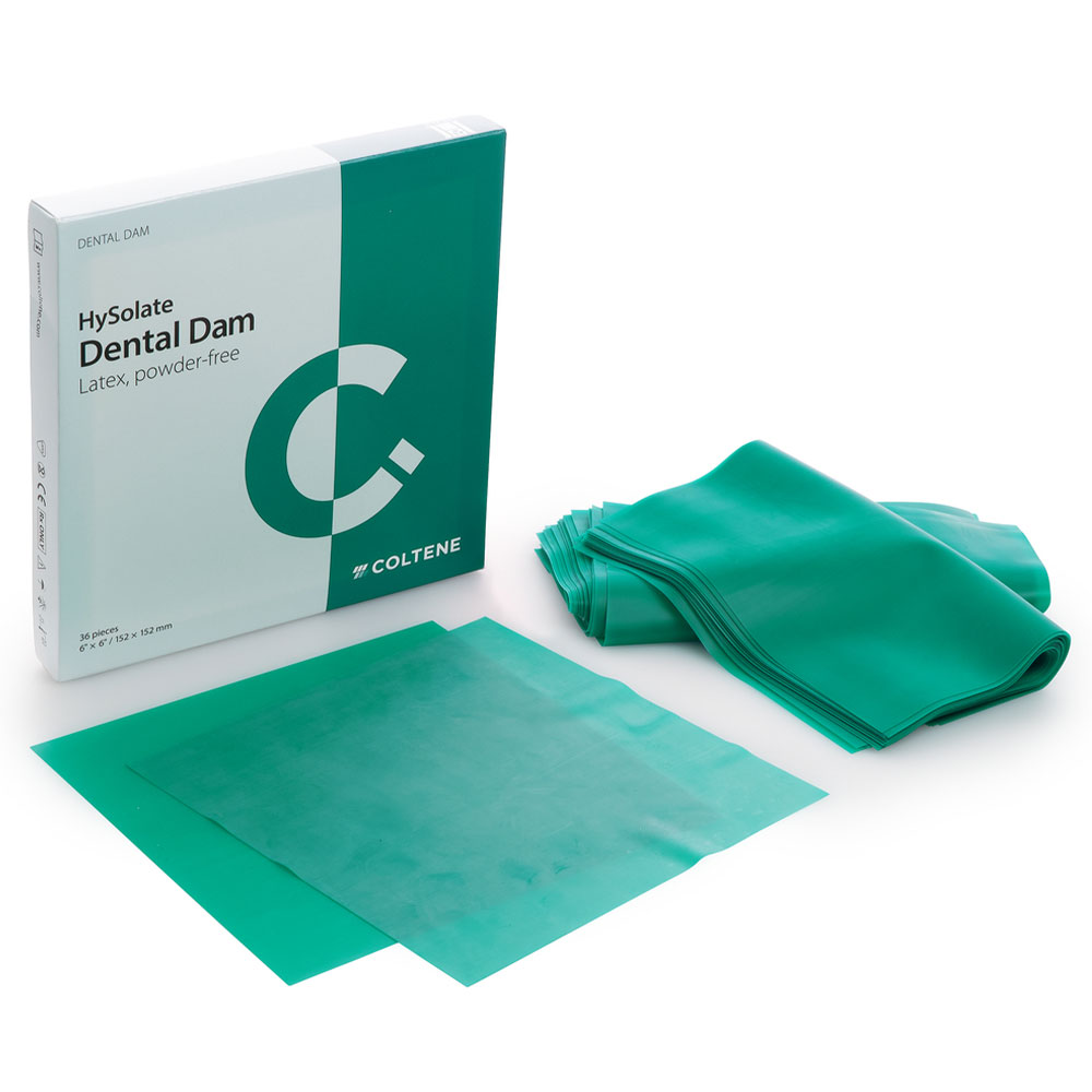 Kofferdam i stykker, latex, pudderfri, heavy, grøn, 152 x 152 mm.