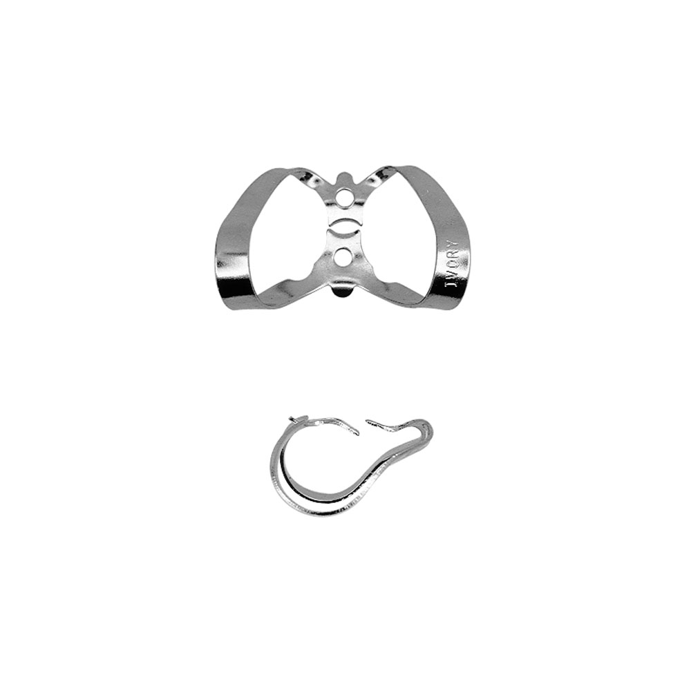 Kofferdamklamme i satineret metal (mat), SS 9, til incisiver.