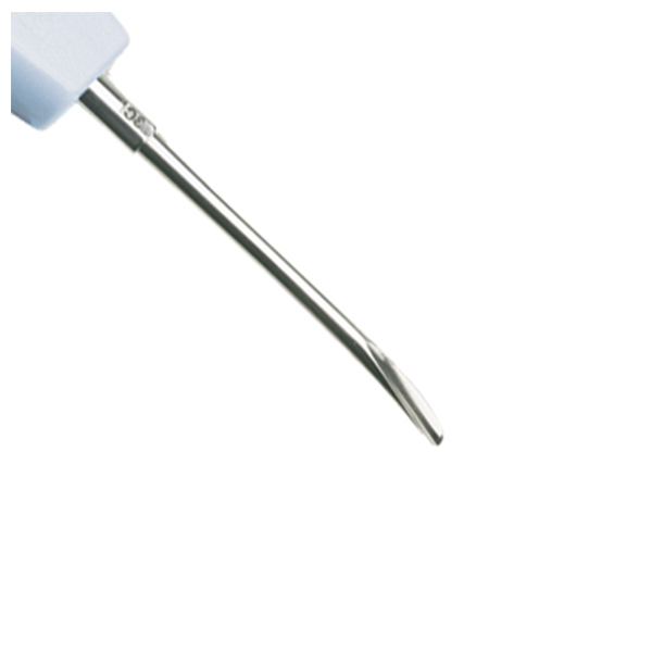 Luxator, gracilt instrument, der anvendes til at løsne rodhindefibrene, må ikke anvendes som elevator, med kortere arbejdsdel, så det kræver færre kræfter at bruge instrumentet. S3C, vinklet, lyseblå/sort, 3 mm.
