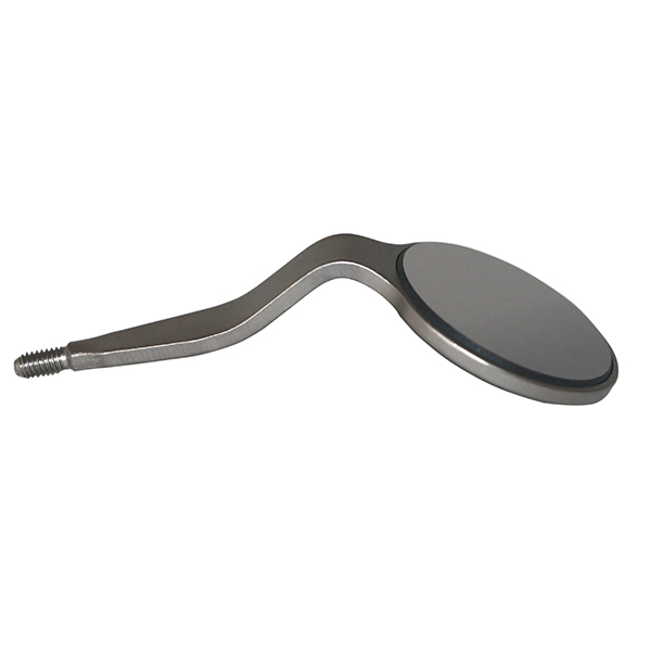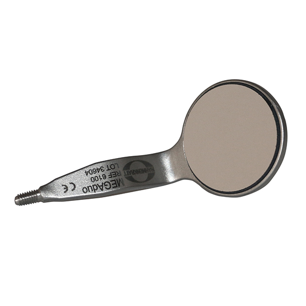 Mundspejl med slank spejlbasis formstøbt ud i et med den brede, flade forbindelse til spejlskaftet, så spejlet kan bruges til at holde kinden til side uden ubehag for patienten. Rhodium-belagt, tåler alle former for rengøring, desinf. og ster.