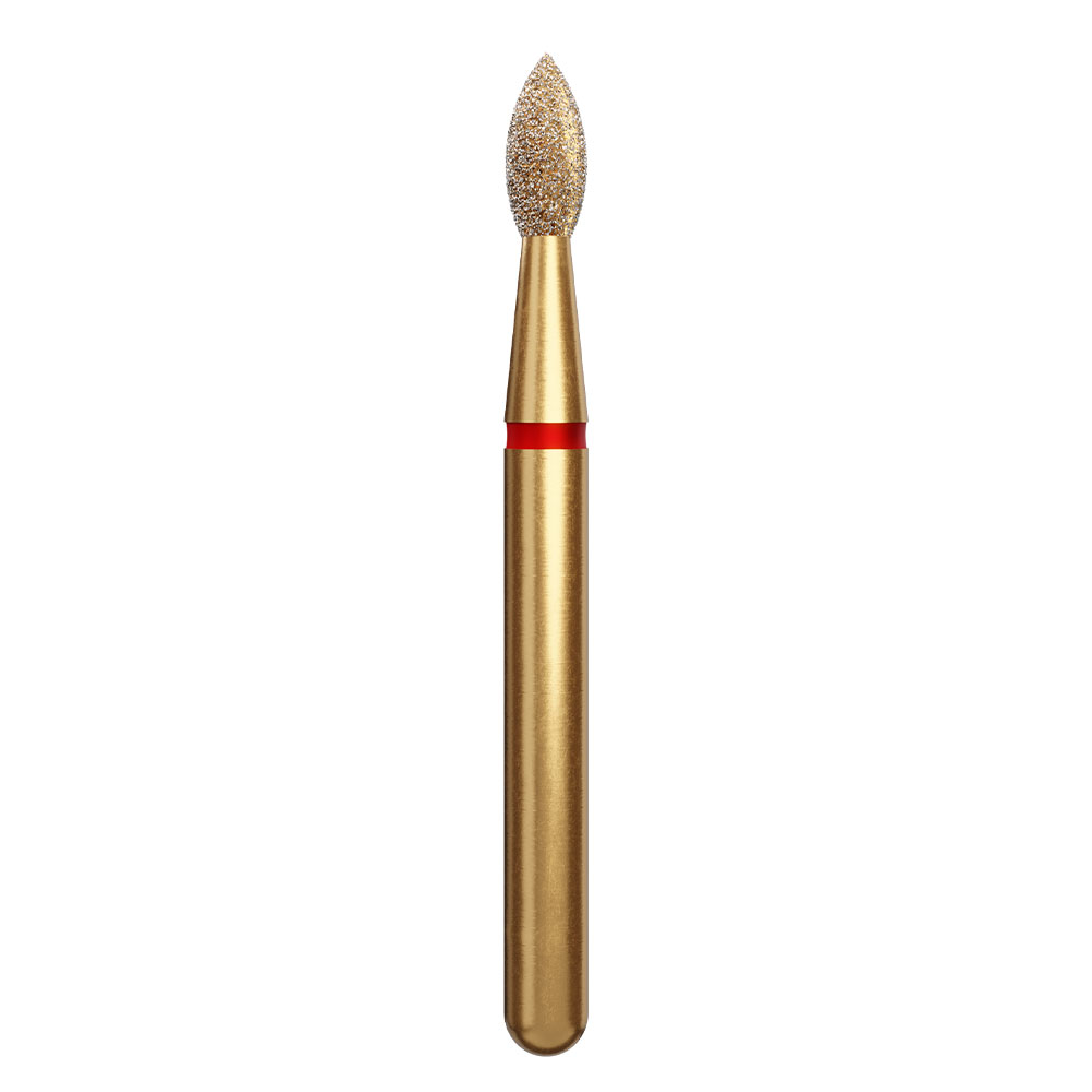 Diamantbor til pudsning, til FG, fin med rød ring, 368/016 F, amerikansk fodboldmed tilspidset top, længde på hovedet 3,5 mm.