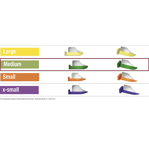 Plastkiler med monteret proxitector. Anvendes i forbindelse med præparation så nabotanden ikke beskadiges, medium, grøn.