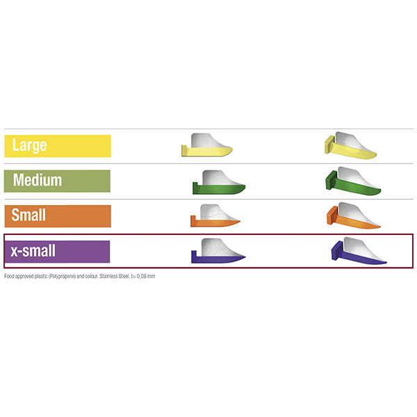 Plastkiler med monteret proxitector. Anvendes i forbindelse med præparation så nabotanden ikke beskadiges, x-small, lilla.