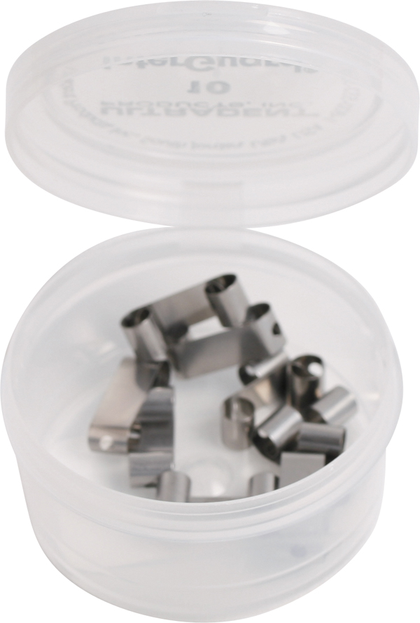 Proxitector af rustfrit fjederstål, der beskytter nabotandens approksimalflade mod boreskader ved præparation, tynd 100 my. Høje, 5,5 mm, til højere kliniske kroner.