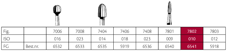 Hårdmetalbor til pudsning, guldfarvede, 12-bladede, til FG, "bullet"-formet, 7802/010.