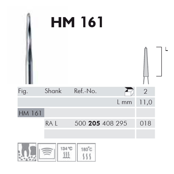 Knoglefræser, Lindemann, hårdmetal, til RA med forlænget skaft, fig. 161, 9,0 x 1,8 mm.