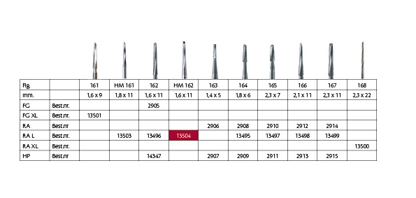 Knoglefræser, Lindemann, hårdmetal, til RA med forlænget skaft, fig. 162, 1,6 x 11 mm.