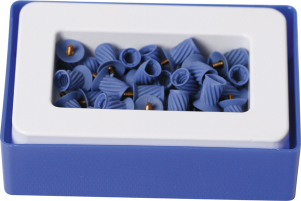 Gummikopper til profylakse, monteret med skrue, nr. 1810, blå, spiralformede, standard.