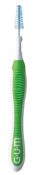 Interdentalbørster med plasthætte, der kan benyttes til skaftforlængelse, nr. 1414, grøn, 0,6 mm tråd, 14 x 2,2/3,7 mm, kegleformet, ISO 3: PHD (Passage Hole Diameter) 1,1 mm.