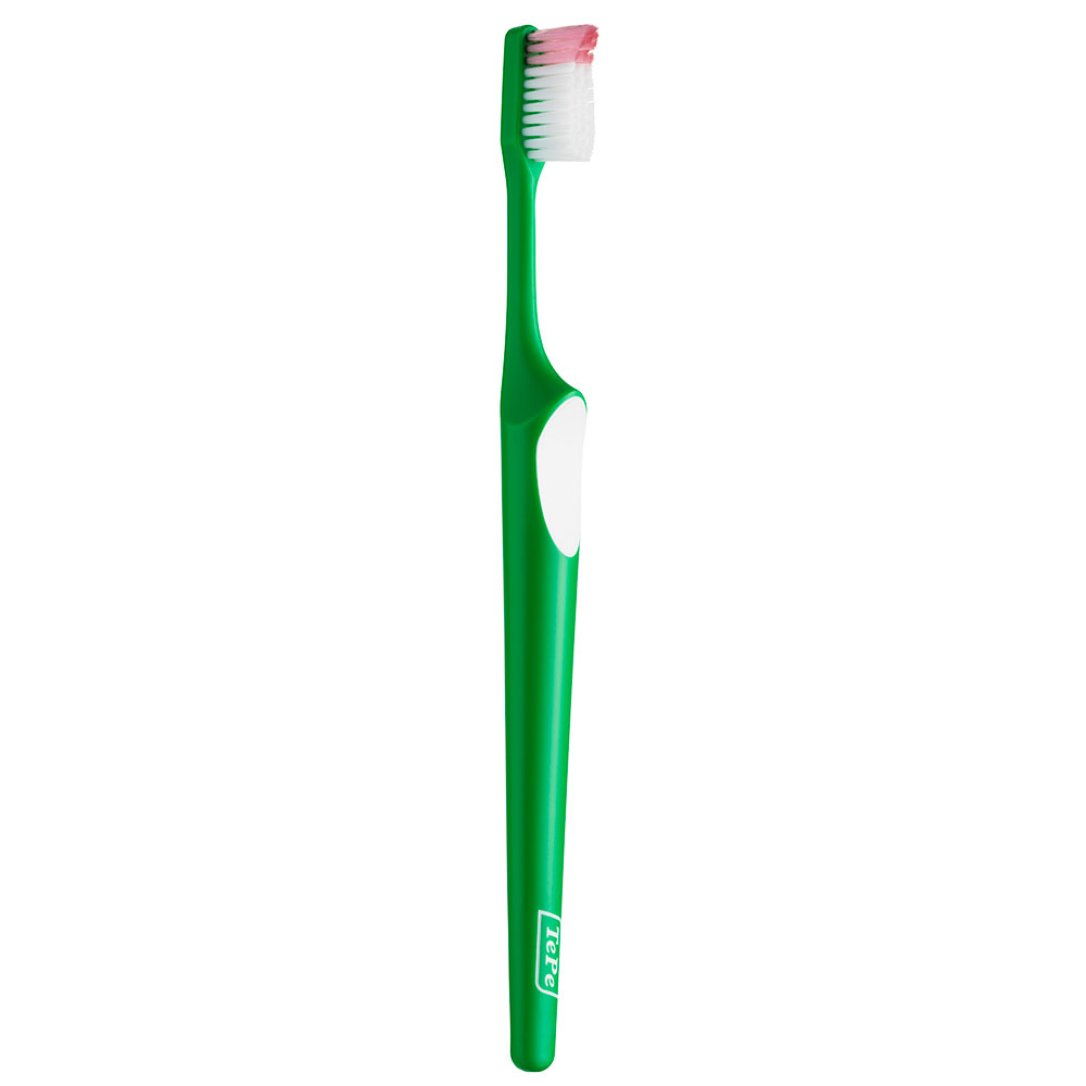 Tandbørste med konisk børstehoved, forlængede, farveindikerede børstehår yderst på børstehovedet samt skaft med gummigreb, Nova, x-soft m. pink børstehår. Pakket enkeltvis i cellofan pakninger.