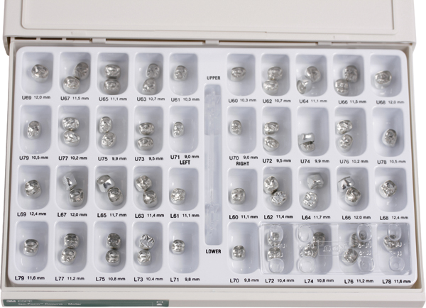 Præfabrikerede kroner af tin-sølvlegering med præformet naturlig kontur og okklusalflade, anvendes til kortidsprovisorier på posteriore permanente tænder, tilpasses let da de er nemme at strække og forme, findes i forskellige størrelser til permanente præmolarer og molarer.
