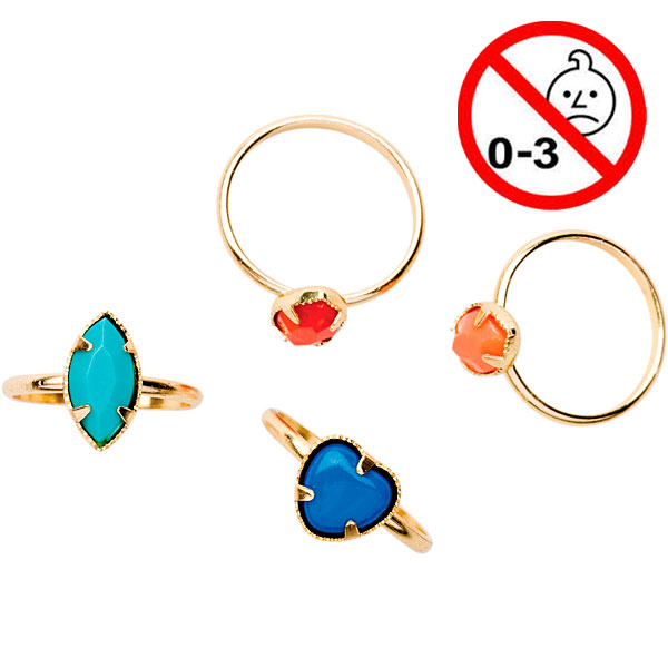 Legetøjsfingerringe, forgyldte med forskellige farver "sten".