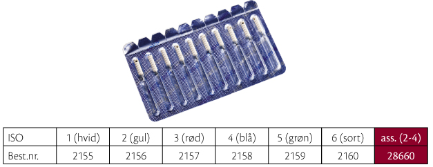 Ekstirpationsnåle, type nr. 333, farvekodede plastgreb, 21 mm, ass. str. XXF - F.