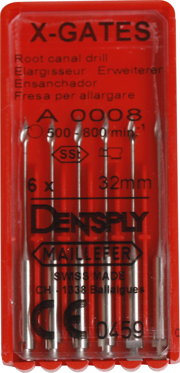 Fleksibelt Gatesbor med lille tip (som Gatesbor nr. 1) kombineret med stor max diameter (som Gatesbor nr. 4), til optimal kanaloplukning, ref. A0008-7, 32 mm.
