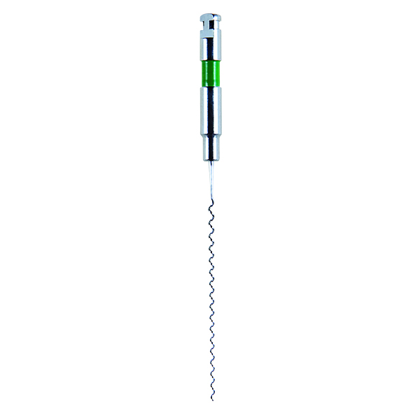 Rodfyldningsspiraler med metalskaft, 25 mm, nr. 35, grøn. Sterilt enkeltpakkede.